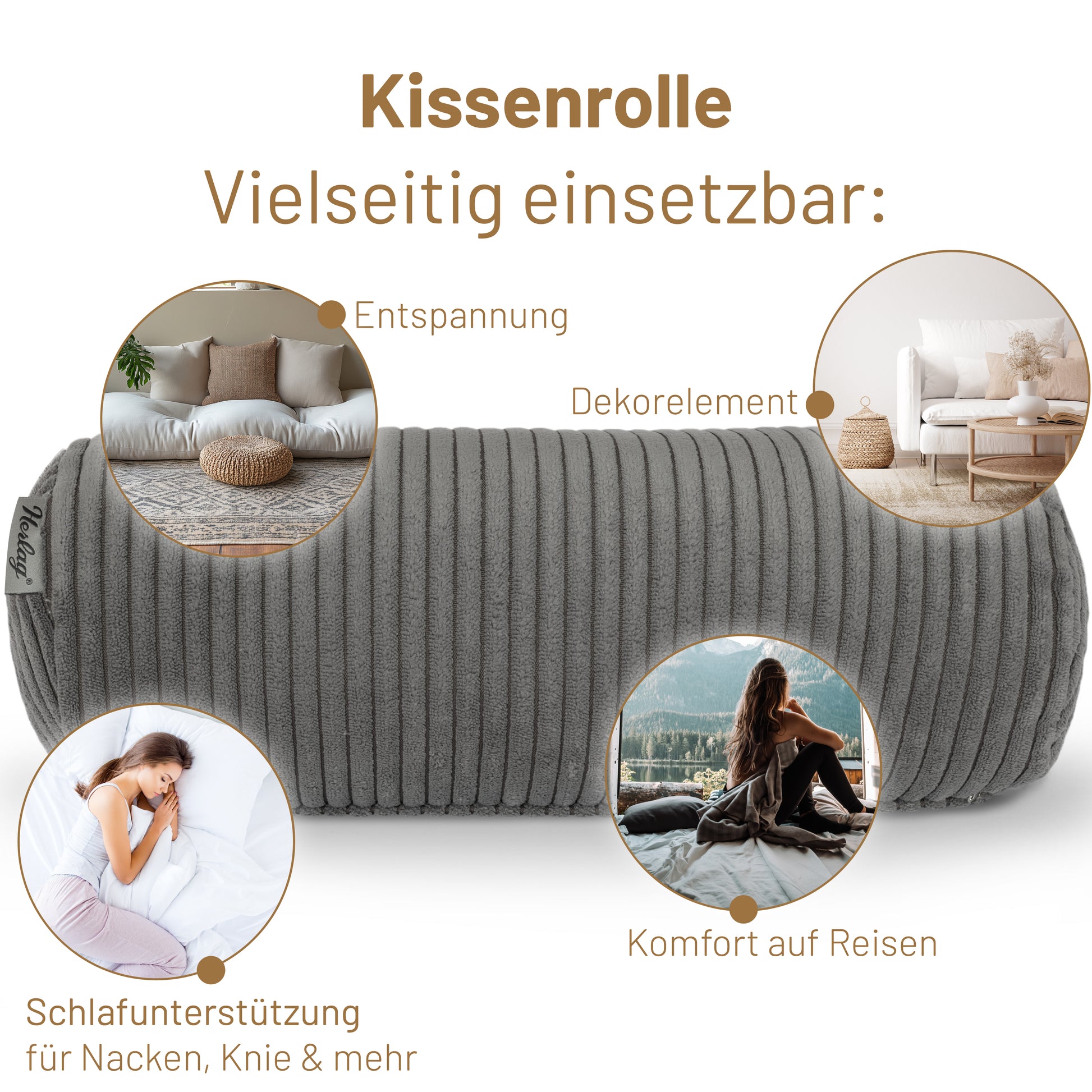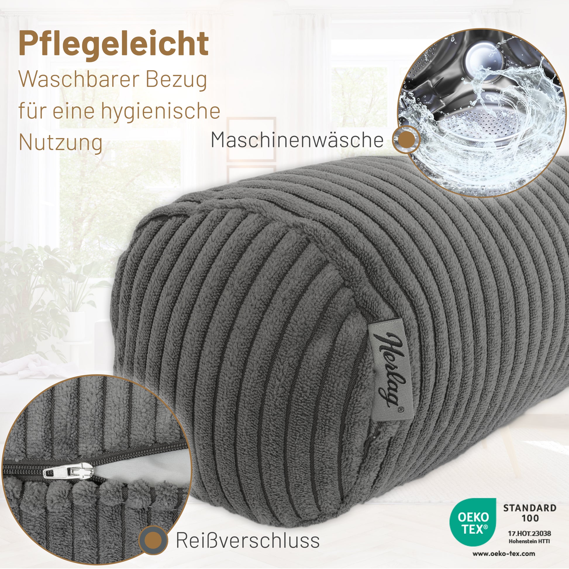 Kissenrolle ELLA - 40x15cm Grau