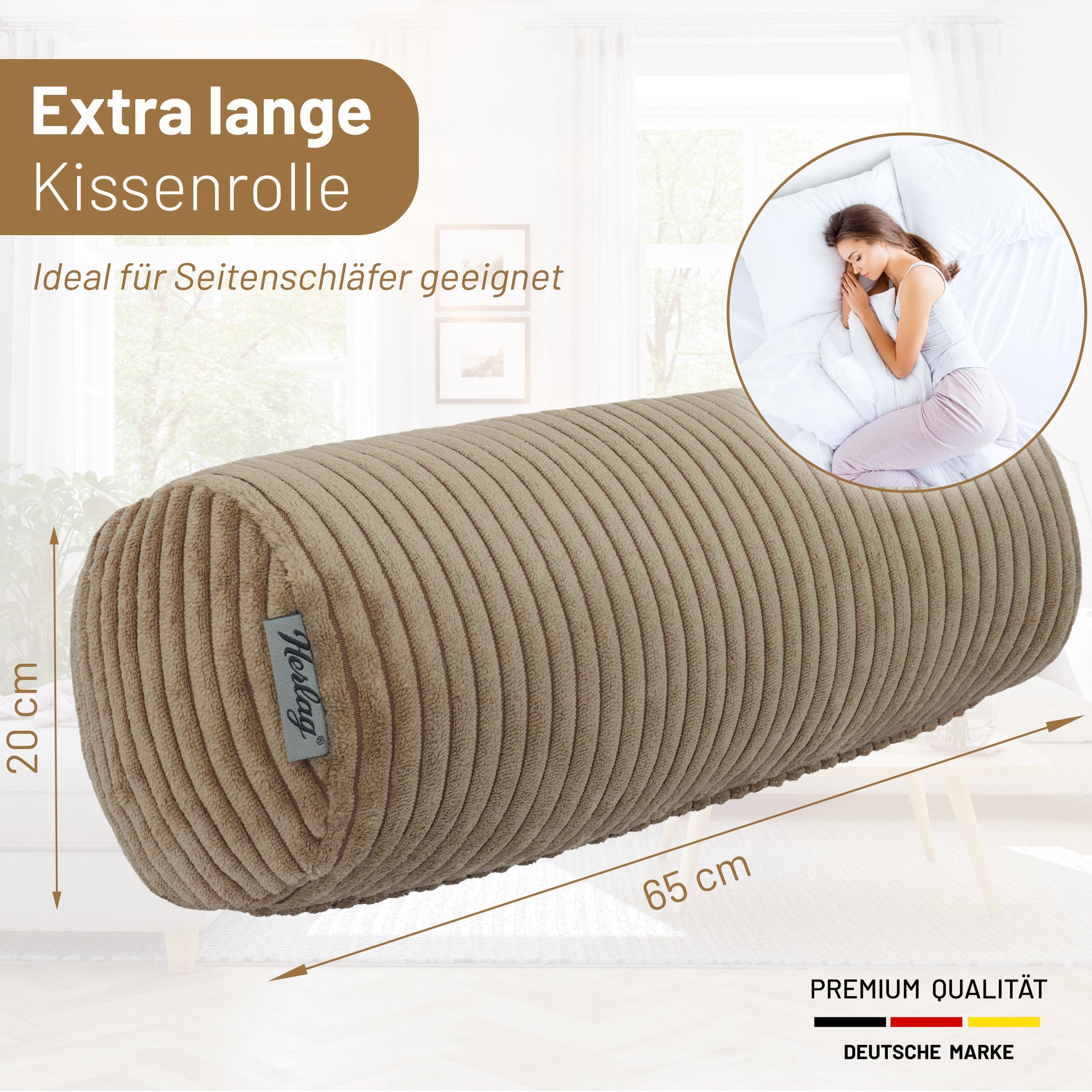 Kissenrolle ELLA - 65x20 Hellbraun