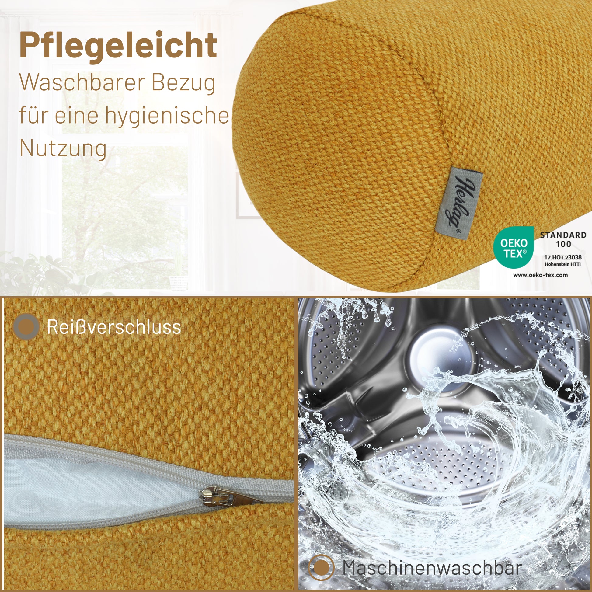 Kissenrolle LUXE - 65x20cm Senfgelb