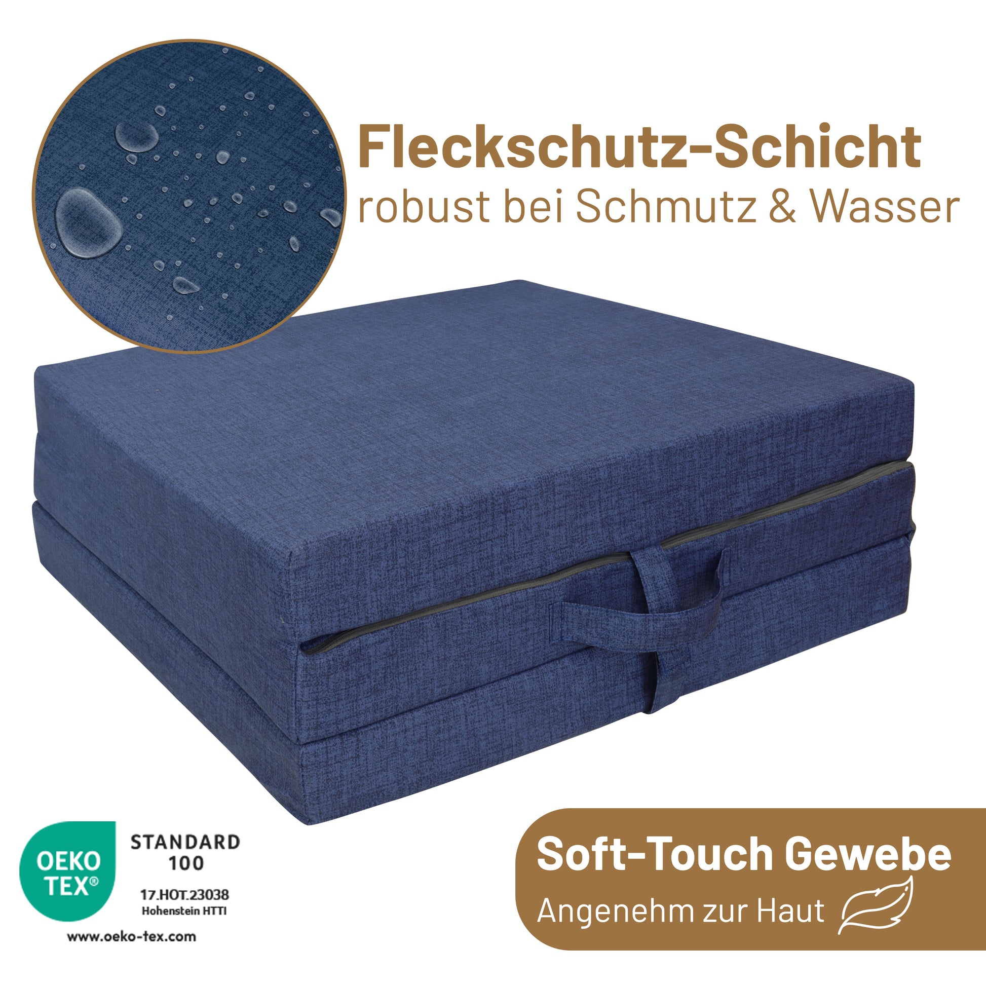 Für maximale Alltagstauglichkeit ist die Gästematratze mit einem pflegeleichten, abnehmbaren Bezug ausgestattet. Über den Reißverschluss lässt er sich einfach entfernen und kann bei bis zu 40 °C in der Maschine gereinigt werden – sauber, hygienisch und unkompliziert.